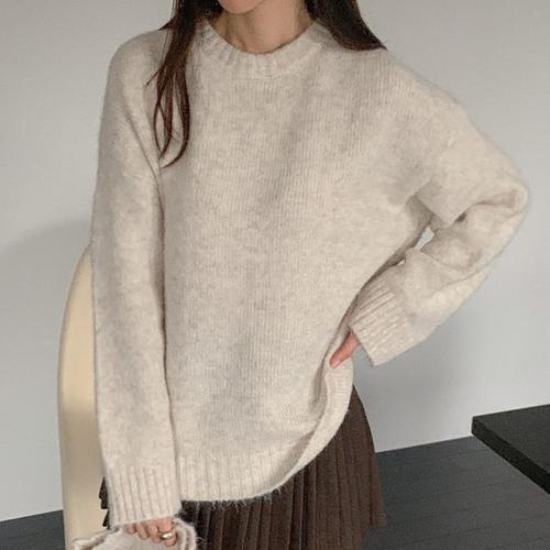 [신상오픈런]여성 버튼 골지 넥워머 부클 라운드 루즈핏 니트 세트 (45899699)