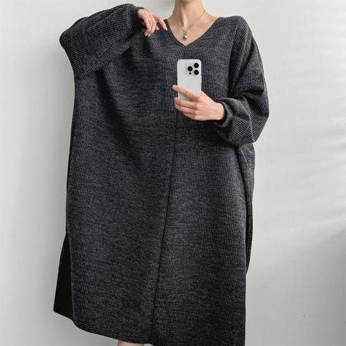 [신상오픈런]여성 브이넥 롱원피스 빅사이즈 골지 슬릿 봄 외출복 (45899408)