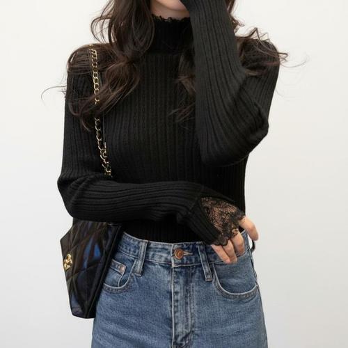 [신상오픈런]레이스 디테일 여성 골지 니트 티셔츠 데일리 패션 (46201845)