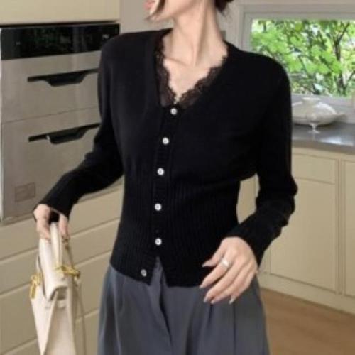 [신상오픈런]여성 슬림핏 프릴 레이스 골지 니트 가디건 (46213693)