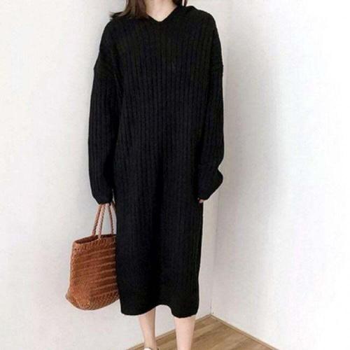 [오너클랜]인기상품 여성용 골지 후드 롱 니트 원피스 봄 가을 겨울 긴팔 블랙 [WFLILSV_260301]
