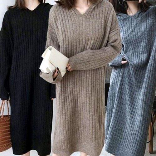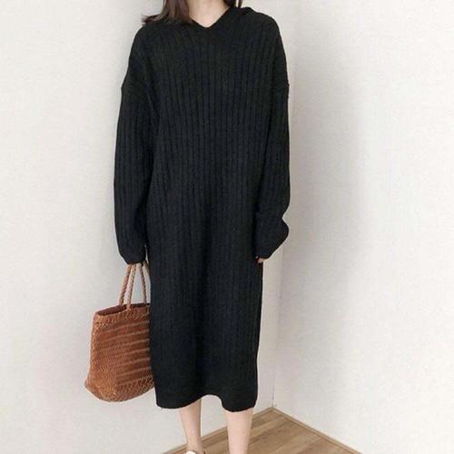 [엄지척]겨울 후드 달린 데일리 여성 원피스 골지니트 롱_19802859_667501