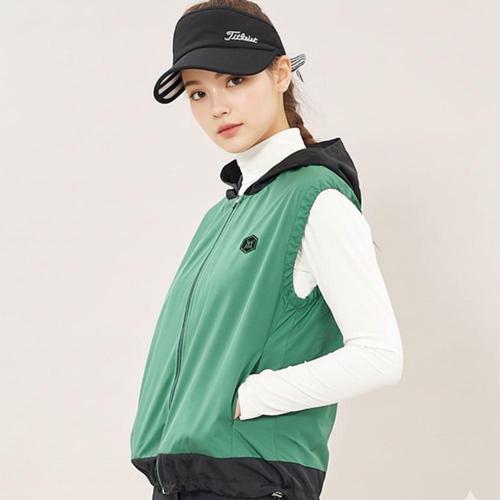 [기타브랜드]오베르마스 배색 후드 집업 베스트 여성 골프웨어