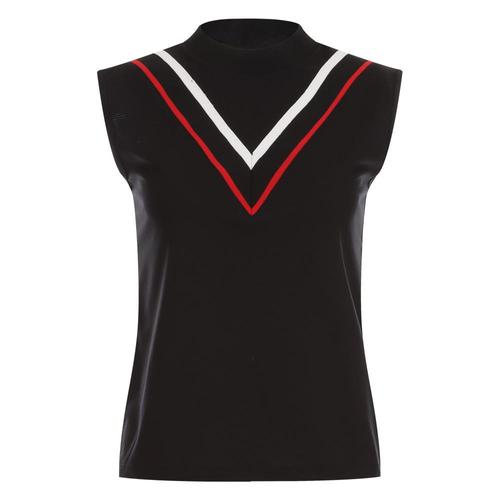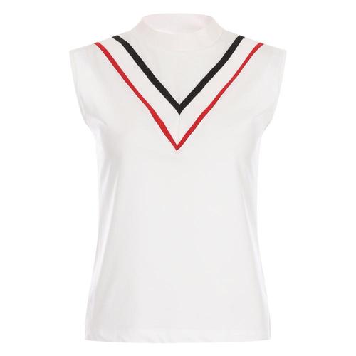 럭스골프 여성 오픈카라 배색 펀칭 민소매 니트셔츠 LB25M508W