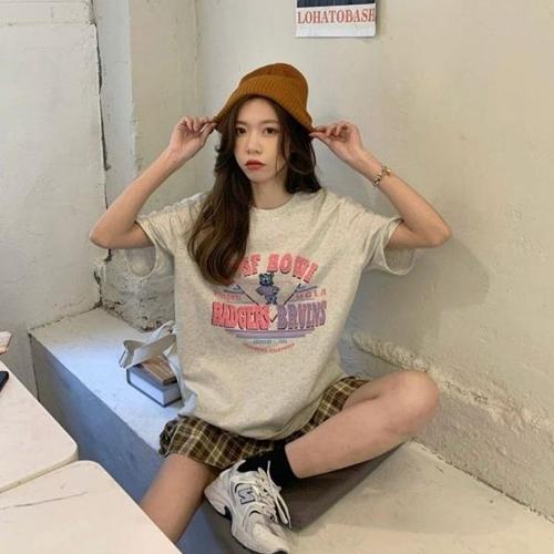 [엄지척]여성 곰돌이 프린팅 오버핏 반팔티 영문 여름 티셔츠_19615037_667501