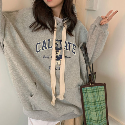 슈팅스타 / 레터링 곰돌이 프린팅 루즈핏 캐주얼 데일리 후드