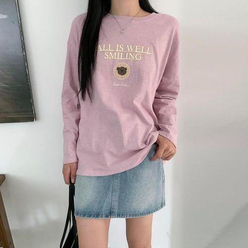 [아우트]여성봄티셔츠 레터링 곰돌이 루즈핏 반팔티