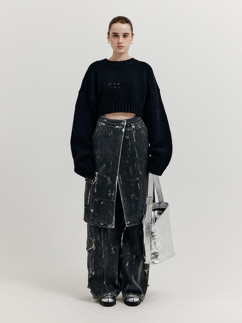 더블 웨이스트 마이크로 데님 스커트