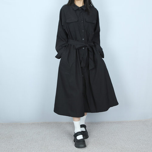 [파라노말샵](하객룩) 3색 포켓 벨트 카라 셔츠 롱 원피스 (파라노
