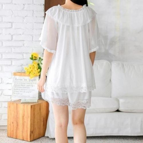 [신상오픈런]|CCD20B2|캡내장 시스루 프릴 공주풍 반팔 레이스 투피스 잠옷_18874715_597559
