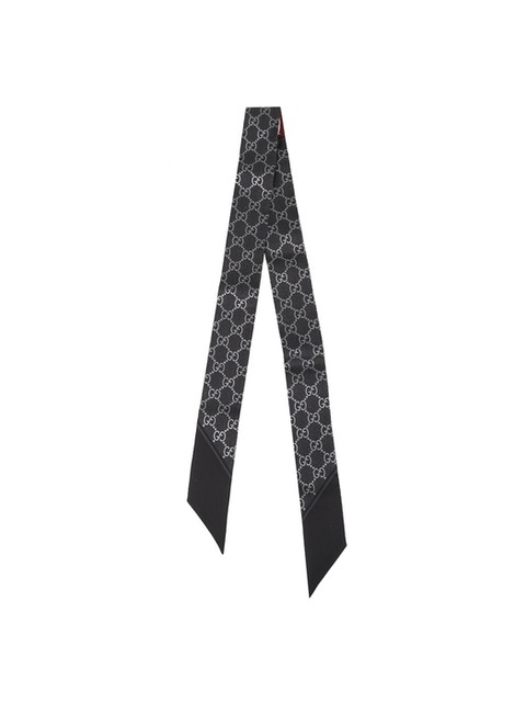 구찌 25FW 블랙 GG 프린트 실크 리본 스카프 812250 3G001 1060 1560378