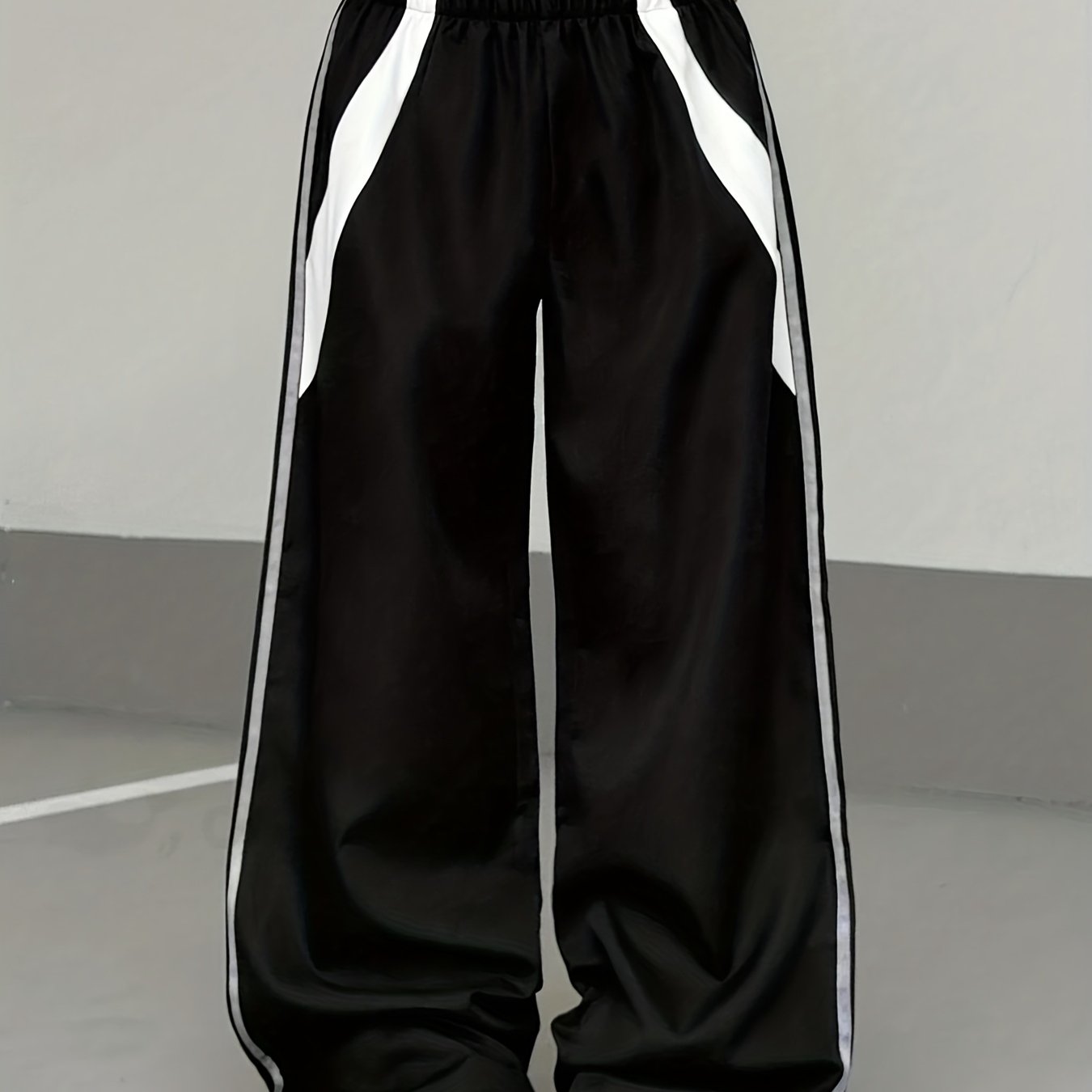 TEMU 우아한 디렉셔널 여성 패션 힙합 스웨트팬츠, 블랙 앤 화이트 컬러 블록 트라우저, 탄성 허리 밴드 및 사이드 , 캐주얼 팬츠, 헤어름 조거|냉장고바지|바지