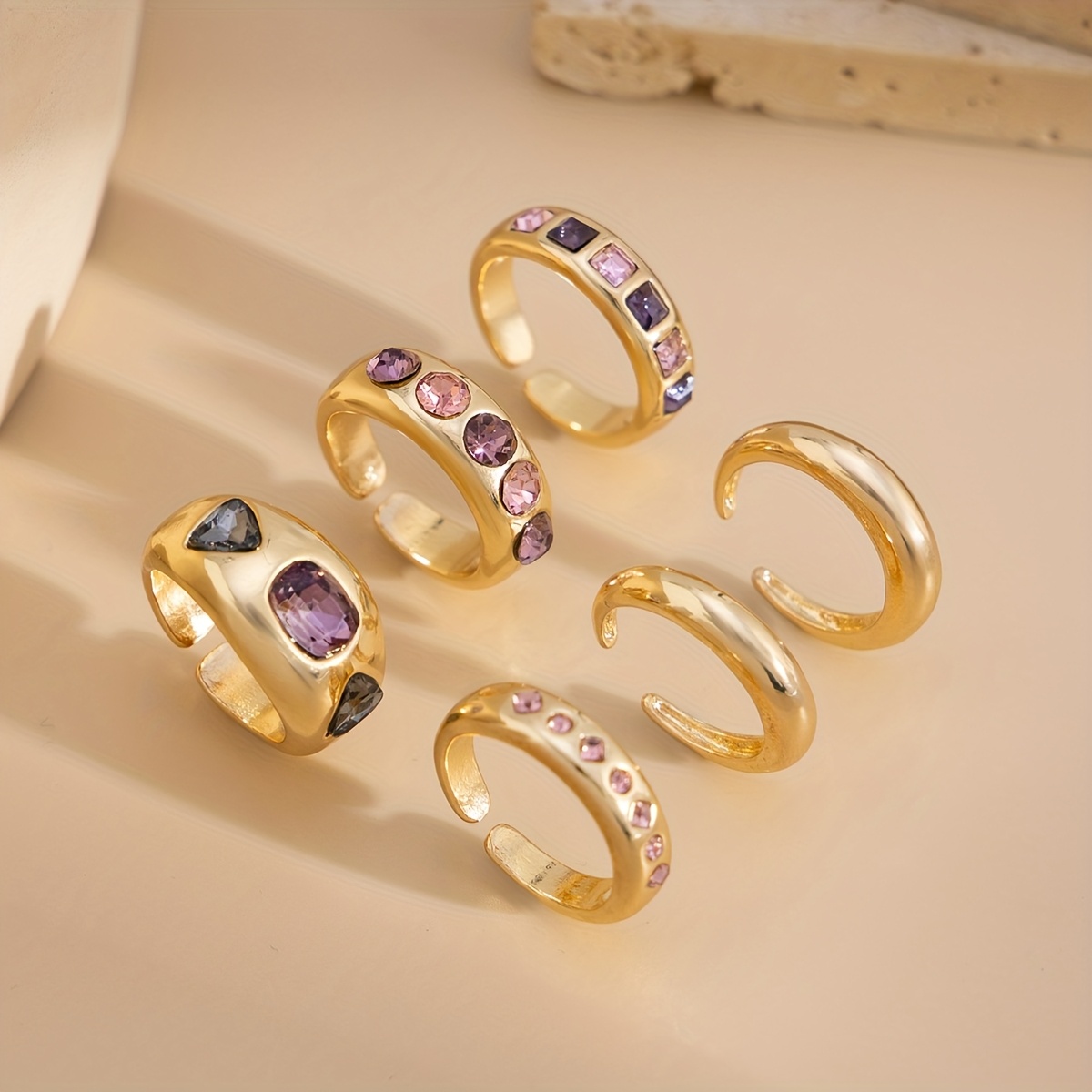 TEMU 여성용으로 인기 있는 컬러풀한 합성 보석이 특징인 6개 세트의 주얼리 반지입니다. 라이트 럭셔리, 스위트, 엘레강트한 룩에 완벽합니다. 이러한 메탈릭 반지는 휴일, , 기념 행사, 기념일, 생일 및 선물용으로 이상적입니다.