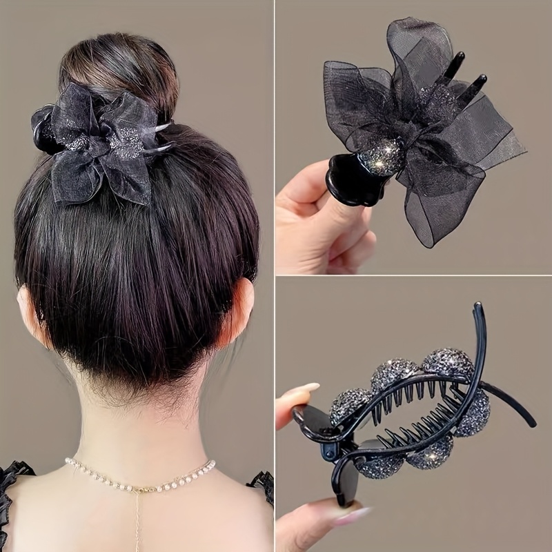 TEMU 가시번 올림머리 가발 집게핀, 페이크 올림머리, 반묶음 헤어핀, 로우번 머리핀, 헤어 클립, 머리삔, 가발 집게삔, 머리집게