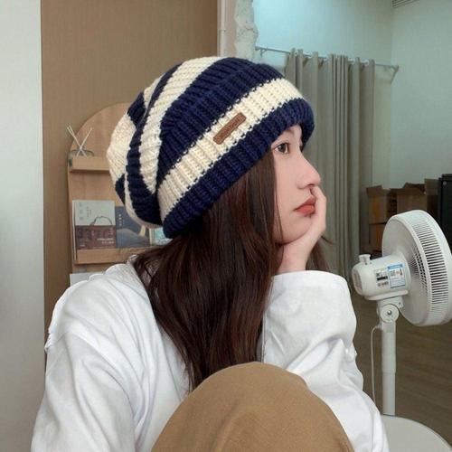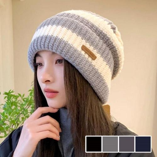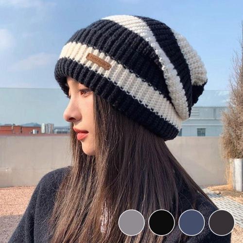 남녀공용 4컬러 굵은 스티치 스트라이프 빅 비니모자 WFG2YQF