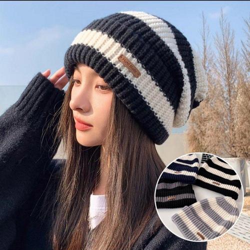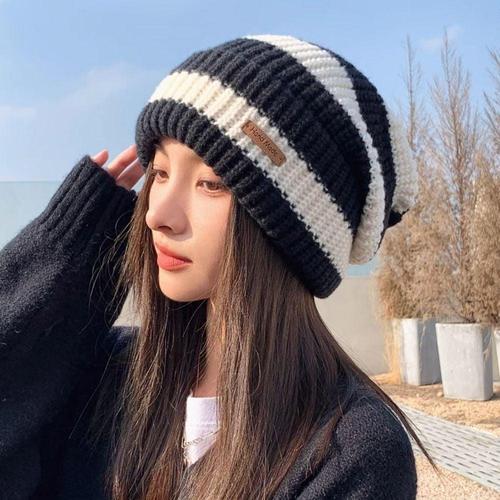 여성 라벨 굵은 스트라이프 스터치 포인트 빅 비니 WFG2Z1Q
