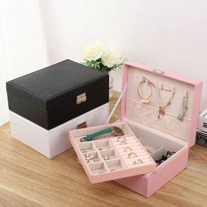 풀커버링 2단 가죽 악세사리 보관함 귀걸이 반지 목걸이 시계 정리함 보석함 케이스 수납함