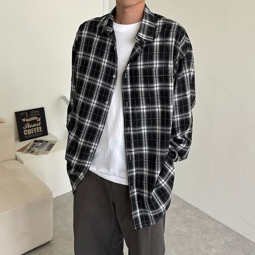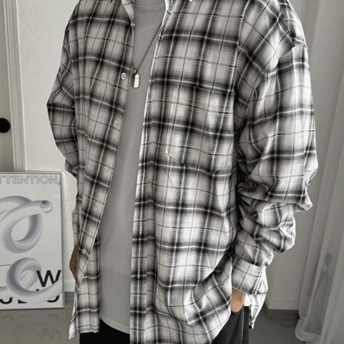 [엠클로]남자 오버핏 캐주얼 체크 그라데이션 커플 남방 셔츠