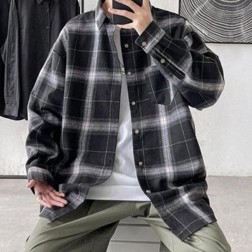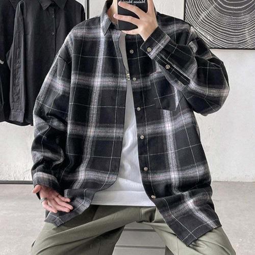 [셀럽하우스]남성 KKJT2304 캐주얼 체크 패턴 루즈 기모 그라데이션 남방