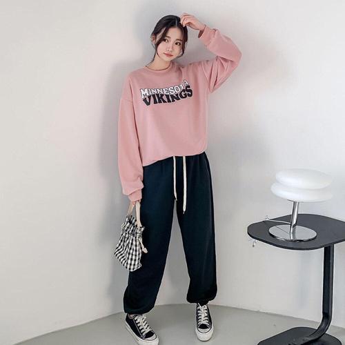 [유야]여성 배색 맨투맨 조거팬츠 트레이닝 세트 -FPST0477- 봄 가을