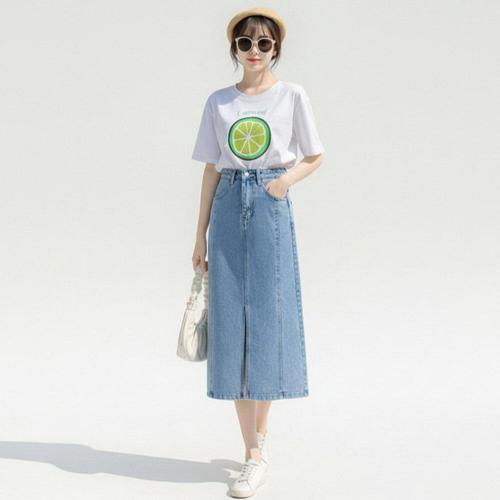 여성 브랜드 24신상 면 청 A라인 후리아 스커트 청치마JEU4WDS0200_US