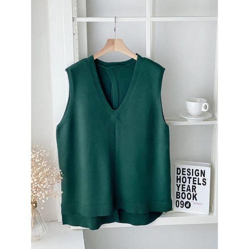 [샵앤]여성 브이넥 백트임 레이어드 니트 조끼 DGB-WVS-4931-그린