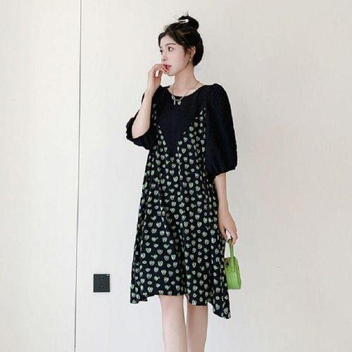 [오너클랜]인기상품 하트패턴 루즈핏 미디 원피스 그린 데일리웨어 [WFLI068_260227]