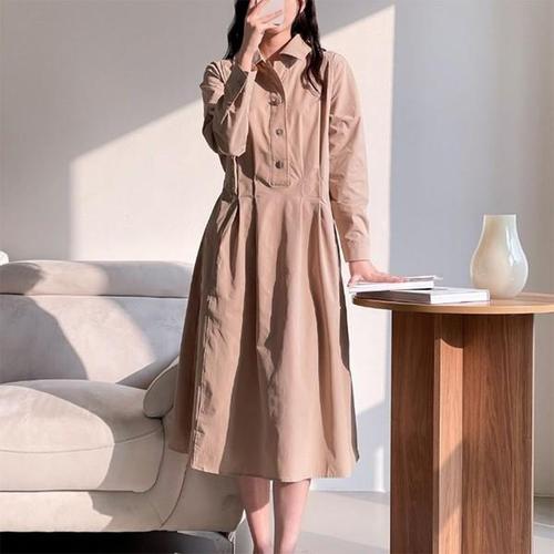 [신상오픈런]루즈핏 면남방 긴팔 딥그린 바스락 셔츠원피스