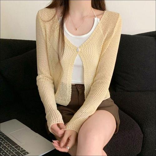 [오너클랜]인기상품 비치는 그물 메쉬 가디건 여름 여자 원버튼 3컬러 [WFLDIFZ_251230]