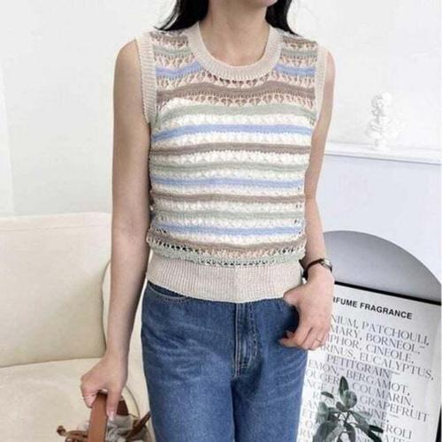 [셀럽하우스]여성 AMRT0671 베이직 캐주얼 니트 조끼 필수템 그물 여름 여자