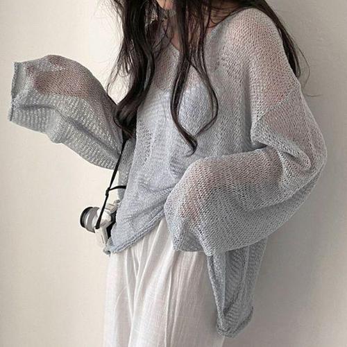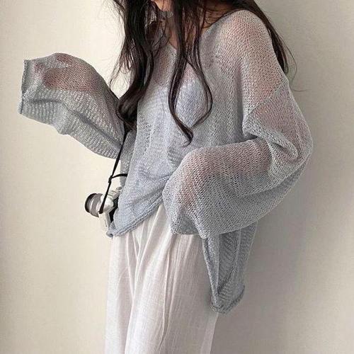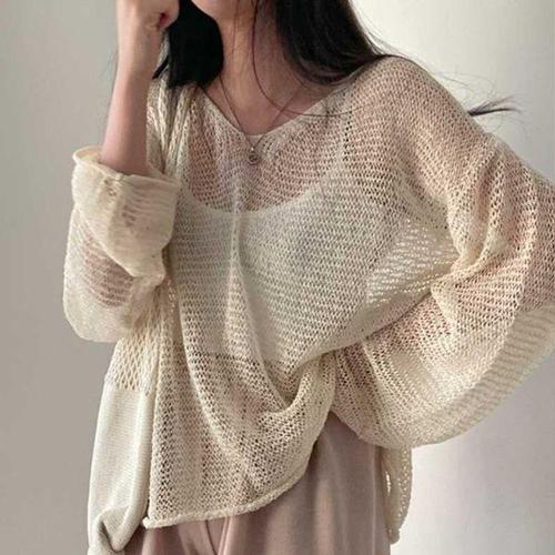 [에이치플러스몰]시스루 얇은 그물 니트 루즈핏 여름 코디 스타일리쉬