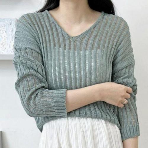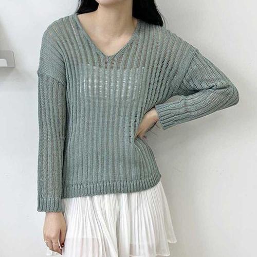 [셀러허브_여성트랜드패션]여성 시스루 그물니트 여리여리 브이넥 여름 루즈핏