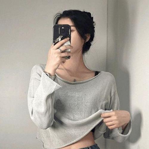 [에이치플러스몰]니트 인기 여름 보트넥 입술넥 감성 그물 시스루 티 2