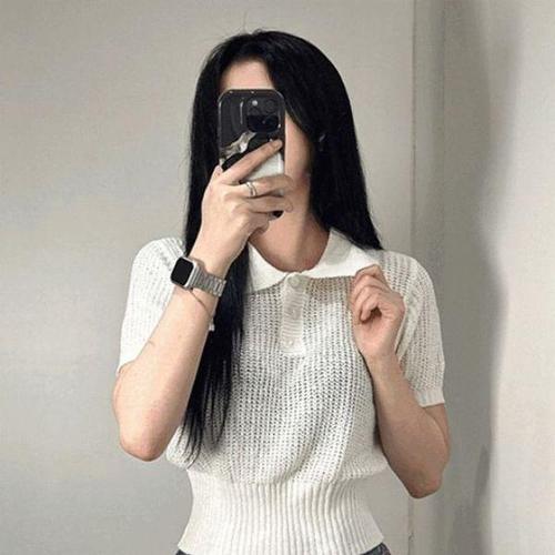 [에이치플러스몰]시스루 여성 추천 그물 반팔 꾸안꾸 니트 티 2color