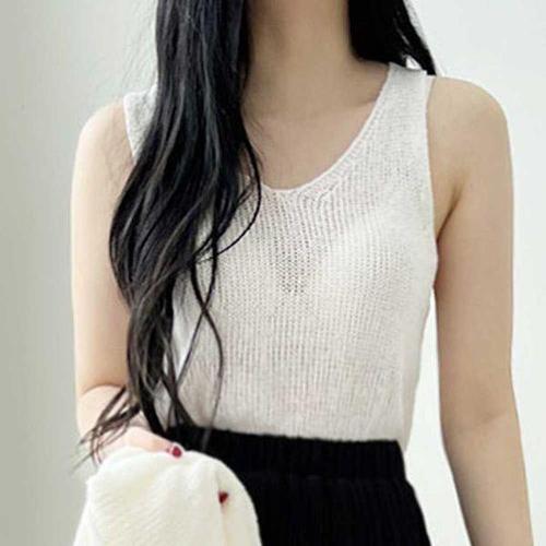 [에이치플러스몰]베이직 V넥 시스루 그물 니트나시 여름 이너 민소매