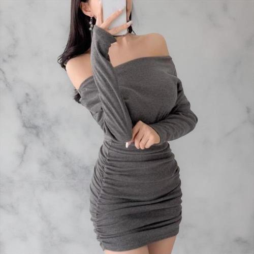 [옷자락]여성 글램핏 오프숄더 긴팔 미니 드레스