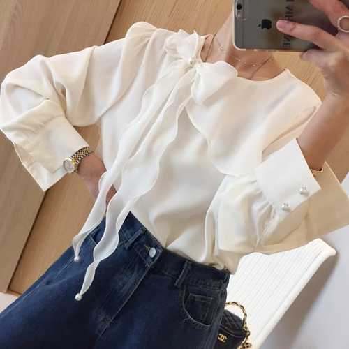 글로시 리본타이 프릴 벌룬 실키 봄 하객 블라우스 (2color)