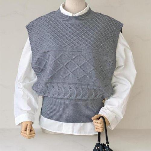 [옷자락]여성 심플 비스코스 펄 글리터 패턴 시보리 니트 조끼