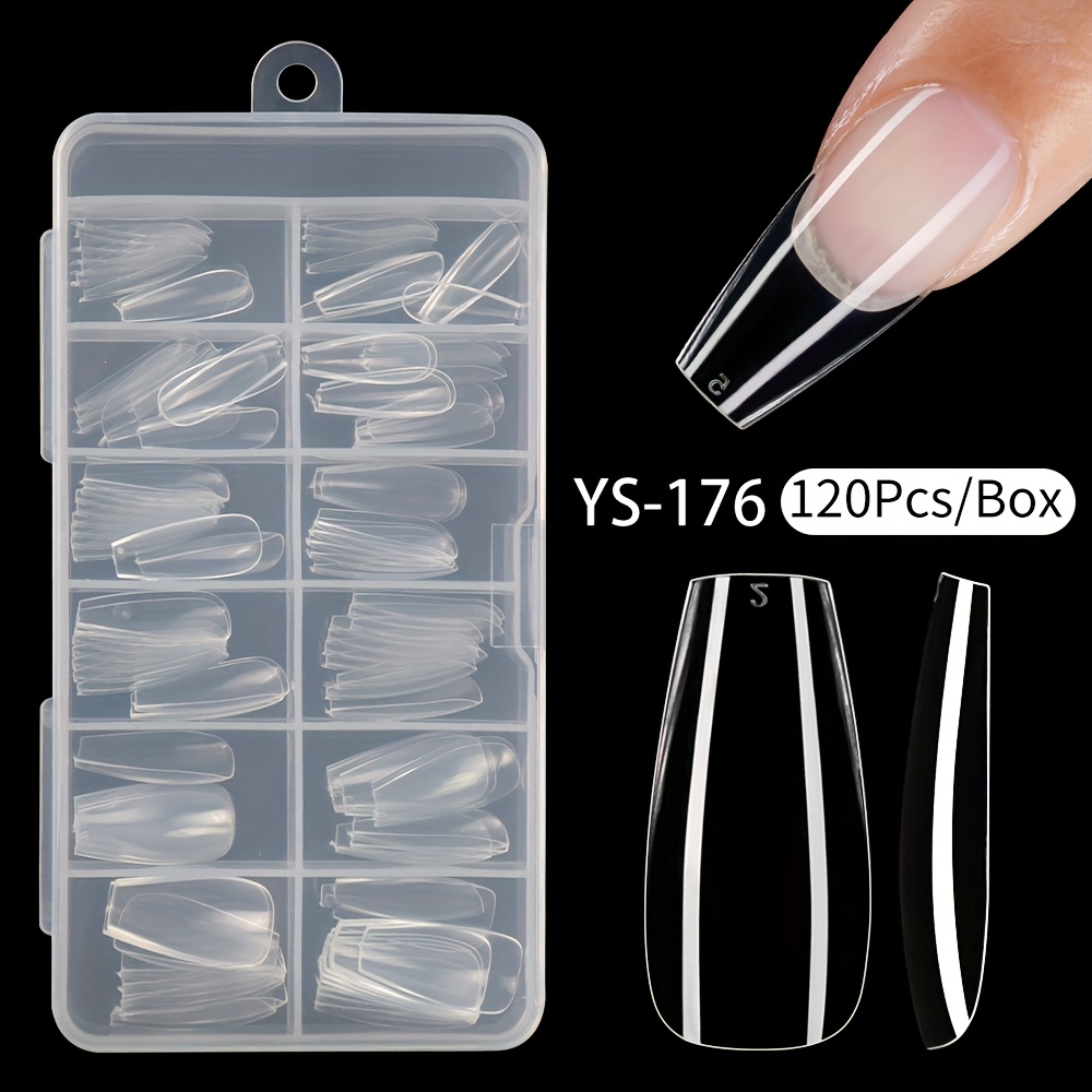 TEMU 120/240개 소프트 젤 네일 익스텐션, 풀 커버 조각 투명 롱 코핀 인조 네일, 발레 네일 팁, 광택 마감, 순수한 컬러 디자인, 누드 톤 프레스온 네일용
