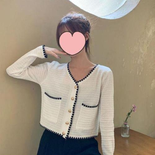 짧은 기장감 고급스러운 금장 단추 배색 니트 가디건