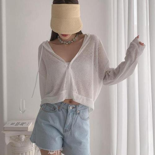 [다잇템]여자 여름긴팔 기모노핏 비치룩 비침 후드집업 (10325389B)