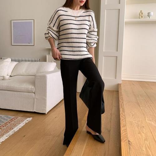 [다잇템]여자 하찌긴팔 기모노핏 U넥 줄무늬 니트 (11146166A)