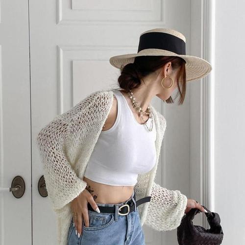 [다잇템]여자 롱슬리브 박시 탱크 기모노핏 비치룩 니트 (10429953A)