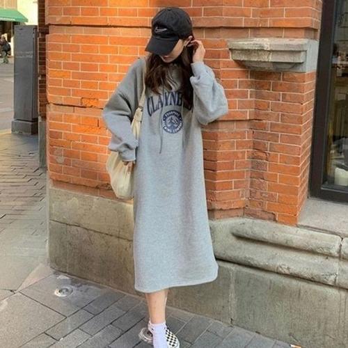 [옷자락]여성 영문 레터링 기모 안감 후드 긴팔 롱원피스