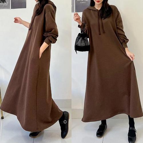 [엄지척]기모 여성 무지 긴팔 후드 롱 원피스 캐주얼 빅사이즈_19803638_667501