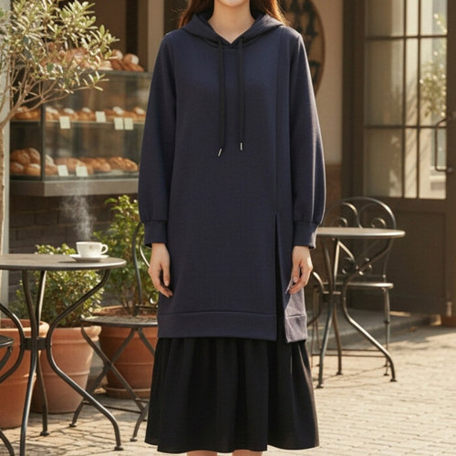 데일로엔 여성 긴팔 베이직 후드티 니트 원피스
