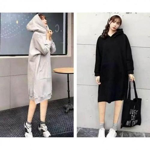[엄지척]루즈핏 여성 클랜 기모 후드 롱 긴팔 캐주얼 원피스_19803639_667501