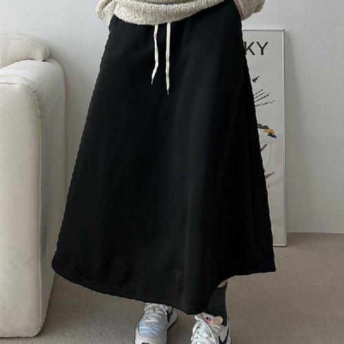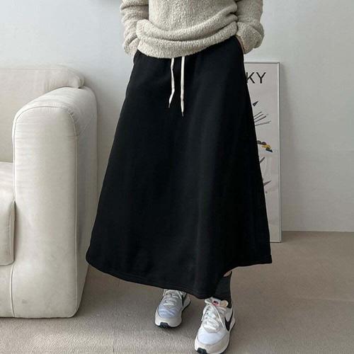 [옷자락]여자 헤어리 기모 일자핏 리본 밴딩 맥시 롱스커트