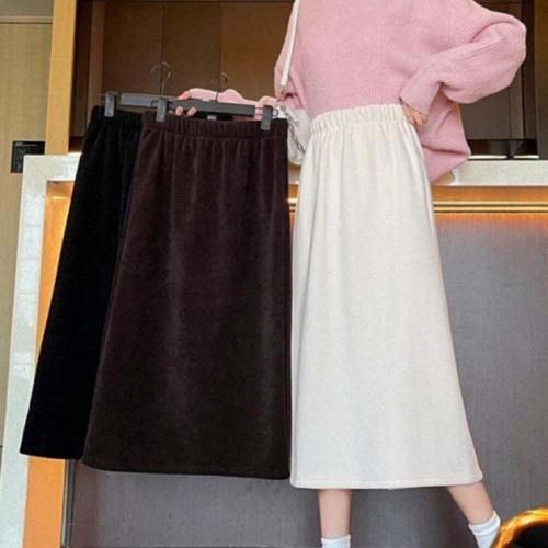 여성 심플 융기모 코듀로이 골덴 밴딩 겨울 롱스커트