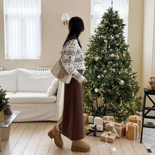 [신상오픈런]여성용 겨울 니트 기모 슬릿 밴딩 롱스커트 (44372473)